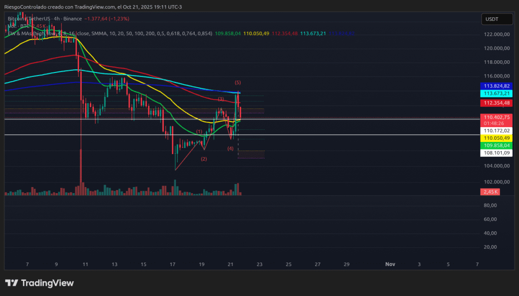 El rebote de Bitcoin fue tan técnico como psicológico. En tus gráficos, el precio se apoyó en el 50% de la vela expansiva (110.700), recuperó la media de 50 sesiones y anuló la estructura bajista de corto plazo.