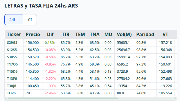 ¿Es complicado de hacer? un poco. Pero si lees la jugada bien, salis ganando bien. Si te inquieta la inflación tenes el TX26 que es un golazo si lo que buscas es esa proteccion, tambien tenes los bonos duales para una estrategia mas defensiva en dolares