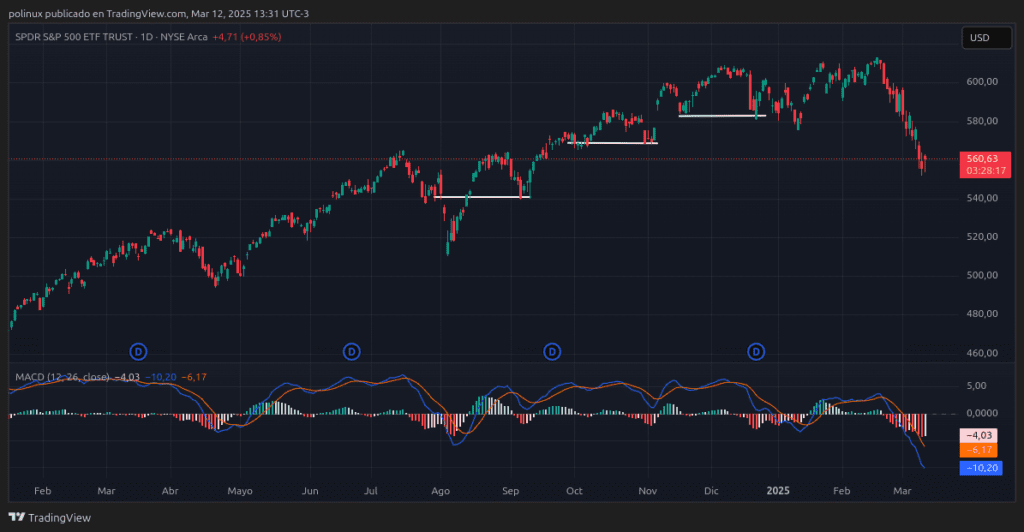 - Advertencia de Debilidad: Cuando el histograma empieza a disminuir, indicando que el momentum puede estar debilitándose.