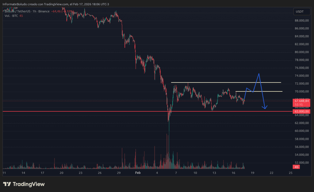 En este contexto, el precio de Bitcoin se mueve dentro de un rango amplio con sesgo bajista. Cada rebote genera esperanza. Cada rechazo devuelve la duda.