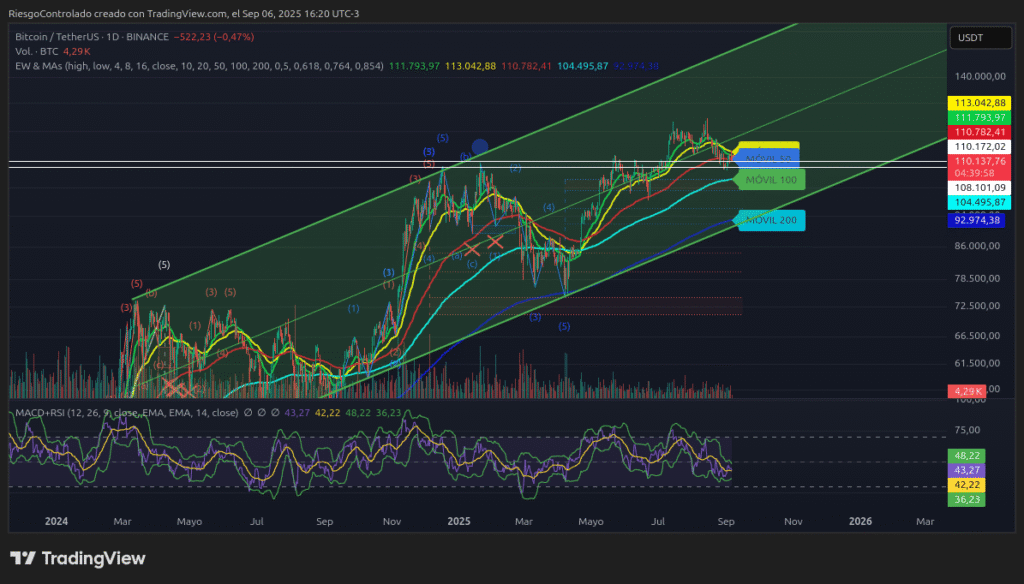 • Conservador: esperar caídas hacia 106k–104k para acumular. Evitar compras en euforia.