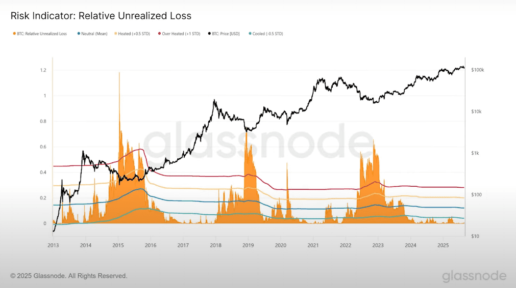 Hoy no estamos ni cerca de un escenario bajista. La pérdida no realizada relativa es de apenas 0,5%, cuando en suelos bajistas suele superar el 30%.