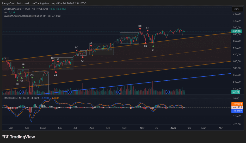 En el gráfico de 4 horas del S&P 500 se ve algo simple: